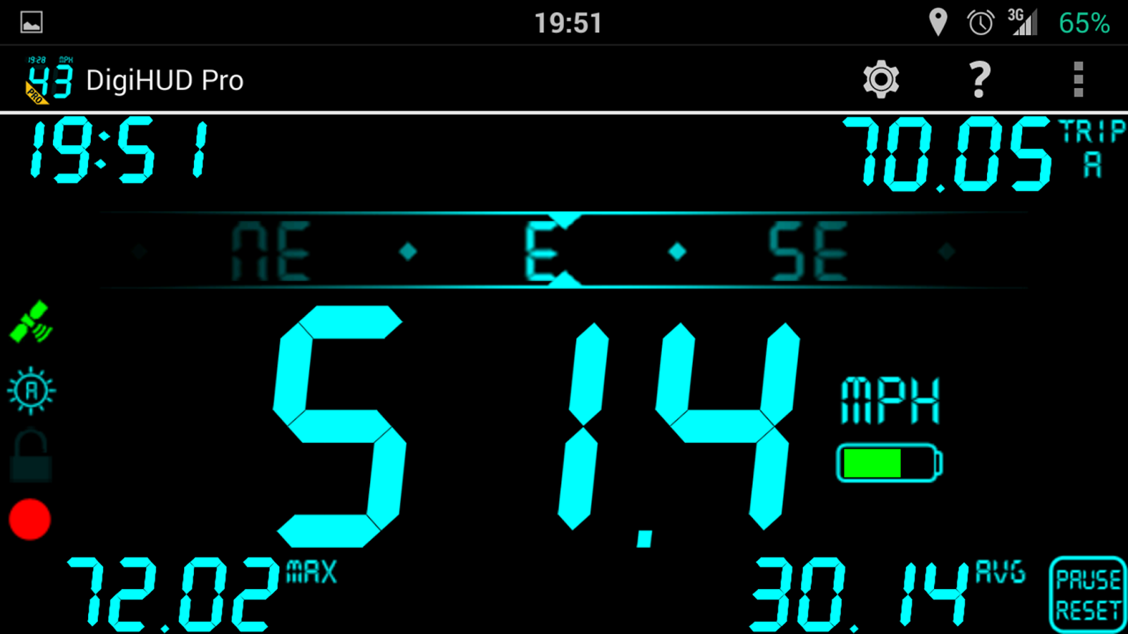 DigiHUD Pro Prędkościomierz jest GPS głowy cyfrowy wyświetlacz opiera się (HUD) dla systemu Android, który może nagrywać pokazy i użyteczne informacje dotyczące prędkości i odległości do podróży. Idealny jeśli prędkościomierz pojazdu zmarł, chcesz sprawdzić swoją prędkość pojazdu lub po prostu trzeba wiedzieć, prędkość podczas jazdy na rowerze, bieganie, latanie, żeglarstwo itp!